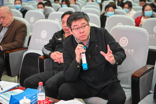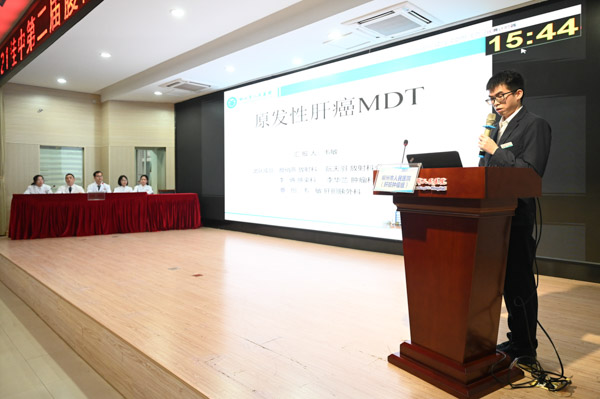 我院副院长潘光栋博士为大会致辞,他对远道而来的各位专家学员表示热烈的欢迎,对积极参加桂中第二届腹部肿瘤MDT大赛并大力支持的各位同道表示衷心的感谢。并简要介绍了我院住院患者MDT诊疗的基本情况,近一年多来,我院完成肿瘤MDT讨论160多次,病例近500例,大力推动了医院肿瘤规范化诊疗,先后成立了肝癌MDT、胰腺疾病MDT、胃肠道肿瘤MDT、肺结节MDT、乳腺甲状腺癌MDT、淋巴瘤MDT、妇科肿瘤MDT共7个多学科诊疗团队,开设了肿瘤多学科诊疗预约门诊,全院形成了多学科联合诊疗的良好氛围。以此作为推动,挂靠我院的柳州市肿瘤性疾病医学质量控制中心开展了全市肿瘤治疗前TNM分期培训、督导、考核工作,指导全市肿瘤治疗机构的治疗前肿瘤TNM分期。他指出,肿瘤规范化诊疗是保证疗效的重要基础,在基层医院推广多学科联合诊疗模式,具有重要意义。
