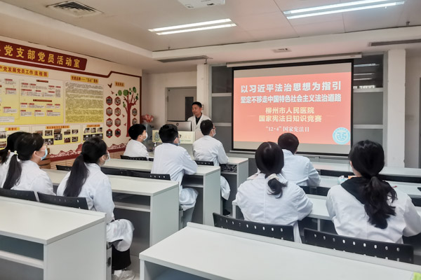 2021年12月4日是第八个国家宪法日,迎来第四个“宪法宣传周”,今年也是“八五”普法规划启动之年,为深入学习宣传贯彻习近平法治思想,落实中办、国办印发的《关于加强社会主义法治文化建设的意见》,柳州市人民医院开展了多样性的宪法学习宣传活动。