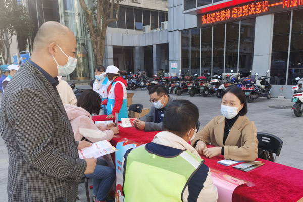 为了更好地开展普法教育,我院还邀请了法律顾问协同法务部,在学术厅前小广场,进行了“争创全国法治单位,推动文明城建设—柳州市人民医院“国家宪法日”主题活动”。向来访群众、职工免费解答相关法律问题,并现场分发《宪法小知识手册》《广西壮族自治区宣传教育条例》等宣传资料。