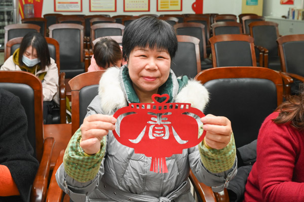 另一侧,剪窗花活动也在热闹进行着,剪刀和红纸在老党员们的手中飞舞着,不久,一张张精美的窗花便跃然而出。