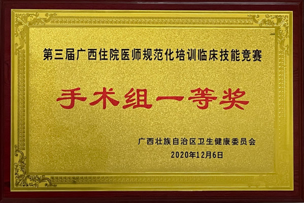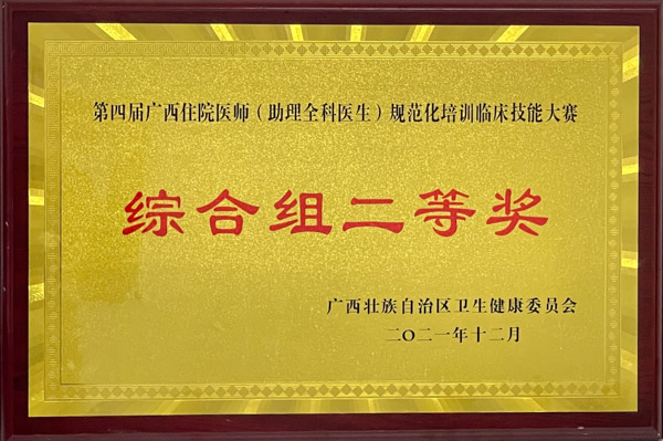 在历届广西住院医师规范化培训临床技能竞赛中,我院荣获手术组一等奖、非手术组一等奖、综合组一等奖、综合组二等奖的好成绩。