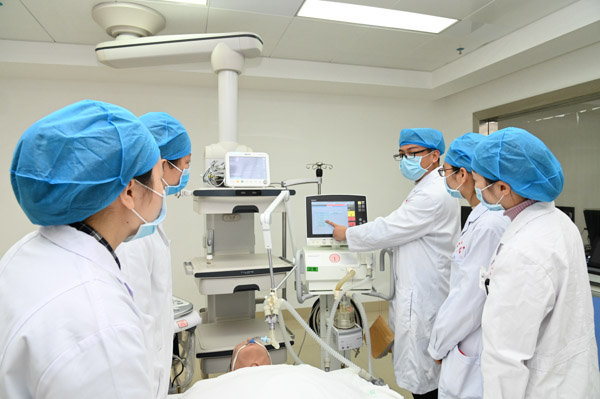 临床技能培训中心建筑面积2307.2平方米,有模拟ICU、模拟手术室和模拟产房、基础技能训练室、腔镜训练室、临床思维训练室等45间实训室,融多功能、多学科、网络化、电子监控、开放性等特点,培训采取集中培训、专项培训、学员自助培训相结合,在保证临床技能训练、临床教学效果方面发挥了良好的作用。