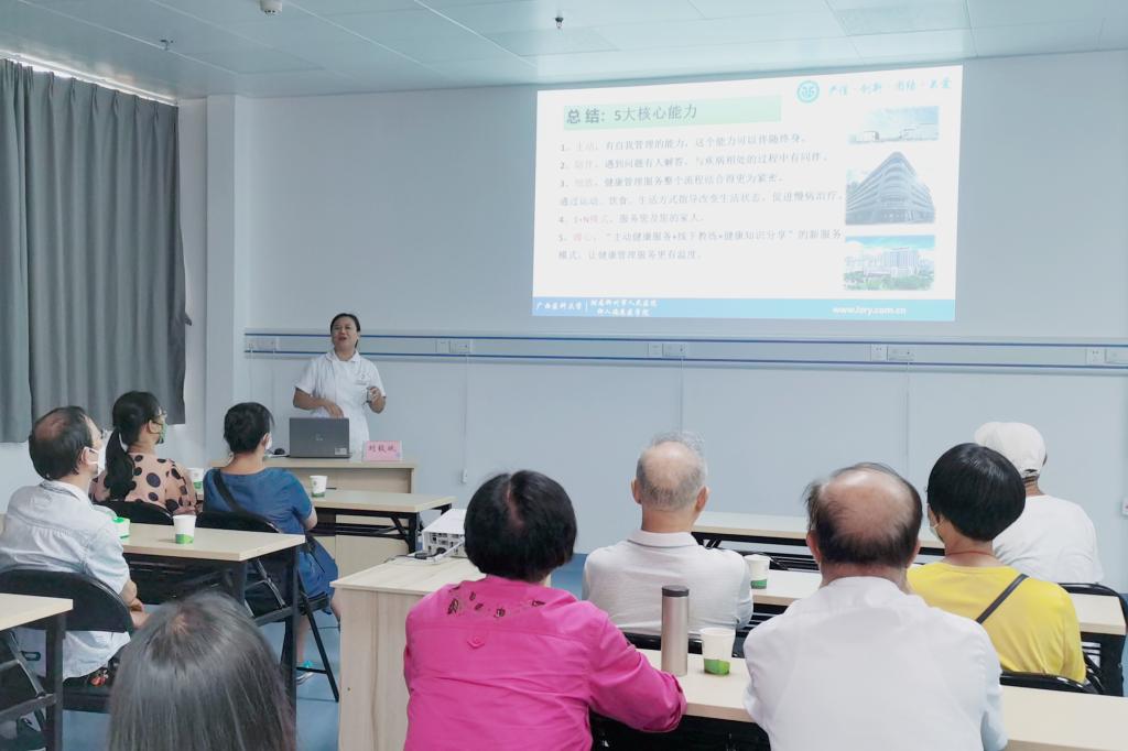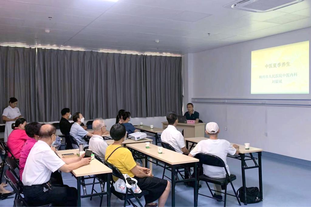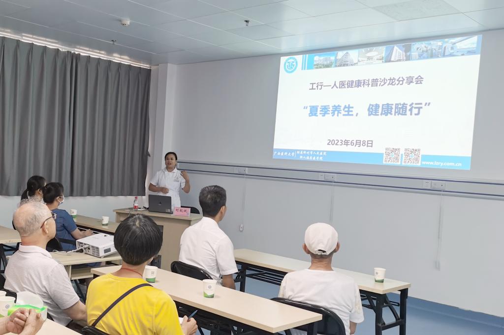 为普及夏季养生知识,防治群众进入夏季养生的误区。6月8日下午,柳州市人民医院健康管理中心联合中医科专家、河东街道社区卫生服务中心全科医生在健康管理服务中心举行工行——健康沙龙专场分享会,为中国工商银行柳州分行退休职工进行夏季养生及常见慢病的防治等方面的健康知识讲座。