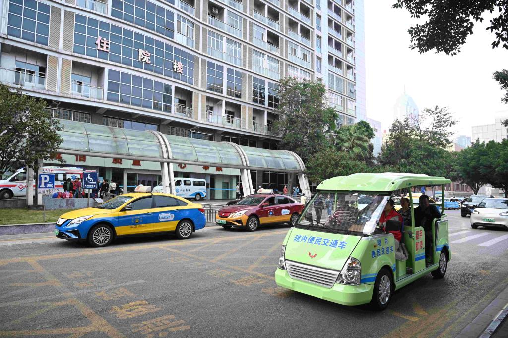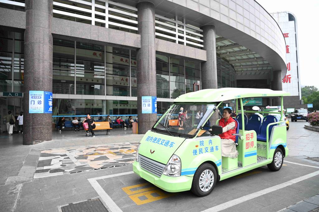 便民交通车服务能方便患者及家属进入院区后尽快到达诊疗区域,进一步提升医院的服务质量和就医体验。在原先仅1辆燃油摆渡车的基础上,医院新增的2辆新能源便民交通车更为绿色环保,能够为乘客提供更加安静舒适的乘车体验。