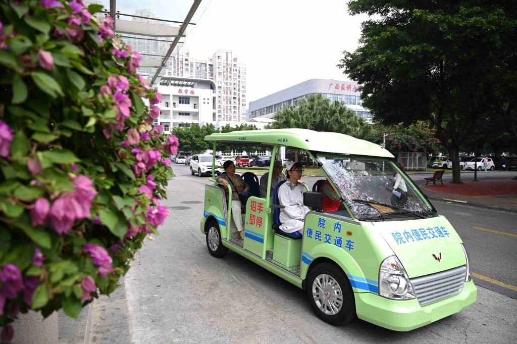 11月4日,柳州市人民医院2辆便民交通车正式投入使用,在院内提供免费运送服务,得到了广大患者和家属的欢迎与认可。连日来,共有370余名患者及家属体验了这一服务。“第一次来医院,这个服务真不错!”从外地来柳工作的陈女士乘车从门诊直达健康管理中心进行单位体检,她坦言乘车为她节省了许多时间。