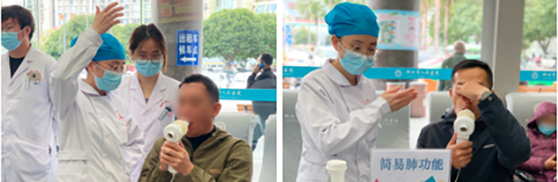 本次义诊还提供了多项免费检查与体验项目,包括肺功能检测、呼吸康复训练指导、血压测量及指脉氧监测等,并发放慢阻肺防治健康教育手册,帮助市民全面了解疾病危险因素与预防策略。