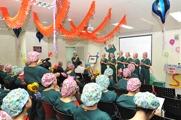 20年护龄的护士们在活动中献上一曲《在我生命中的每一天》的合唱,以及年轻护士表演了《白衣天使》的配乐诗朗诵,用走心的活动表达“绿衣十年·不忘初心”,并对全院医护人员的祝福。护士们非常开心而有意义的度过属于自己的节日,也坚定了她们立志献身护理事业的决心,增强护理团队凝聚力和向心力。