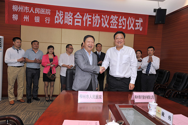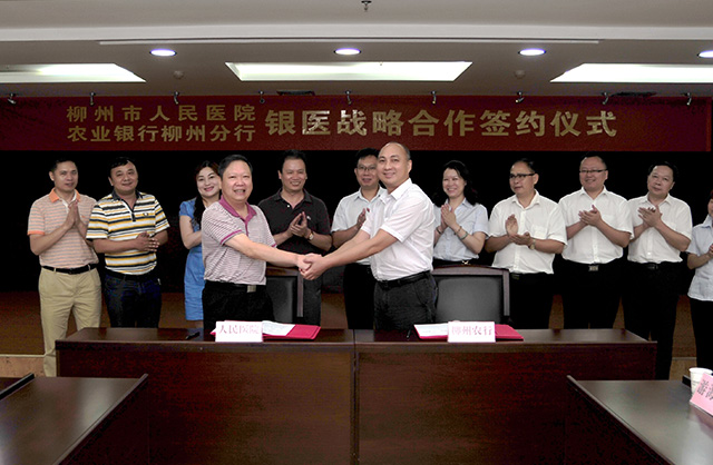 我院本着平等互利、合作共赢的原则,经过充分磋商后,最终与农业银行柳州分行、柳州银行达成合作意向,并于7月21日下午与农业银行柳州分行、10月13日下午与柳州银行分别举行了银医战略合作签字仪式。