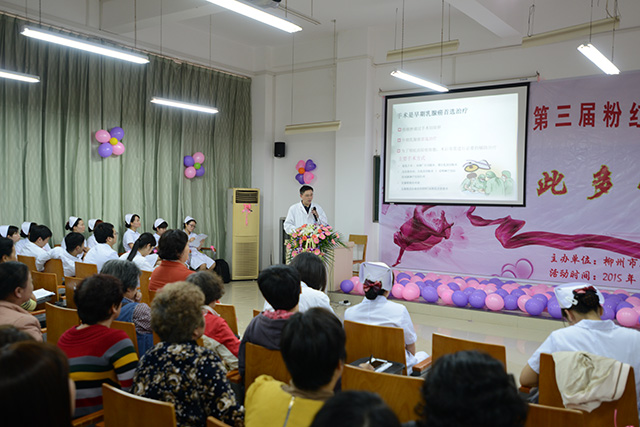 近年来,由于生活、工作、家庭等各方面的压力或其他原因,乳腺癌发病率在迅速增长并呈年轻化趋势,乳腺疾病已严重威胁女性的身心健康。粉红丝带作为全球乳腺癌防治活动标识,既是关爱乳房的运动,也是人们对健康和美丽的一种追求,每年的十月被定为“世界乳腺癌防治月”。10月31日由柳州市人民医院普通外科三病区主办的第三届柳州“爱汝汇”以“乳此多娇”为主题的粉红丝带联谊活动在教学楼隆重举行。