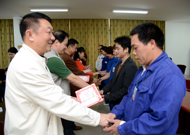 为全面检验我院后勤各岗位技能技巧水平与实际操作能力,激励后勤员工努力提升自己的专业技能,进一步提高一线员工的综合素质和技能水平,10月23日至11月4日,医院工会和后勤支部联合举办2015年第二届后勤职工“岗位能手”技能比赛,参赛的科室有保卫科及总务科各班组,共有11个比赛项目,130多人参赛,本次比赛取得圆满成功。共评出一等奖13名、二等奖20名、三等奖27名,11月5日上午举行颁奖仪式,院领导、工会、总务科各班组、保卫科,以及获奖人员80多人参加了颁奖仪式。(钟冬云/文)