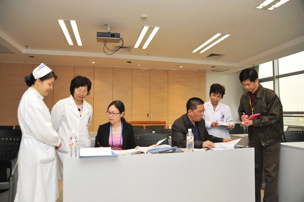 2010年11月7日上午,由自治区卫生厅办公室副主任蒋方力带队的专家组一行11人到我院进行2010年广西医疗服务质量大检查。专家组通过访谈、实地查看、考核、查阅资料等方式检查了包括病历、急诊、护理、医院感染管理、麻醉、检验、医疗安全、依法执业、临床用血等医疗质量管理内容。下午,检查组对检查情况进行了反馈,专家们对我院在落实医疗核心制度、健全各项医疗制度、强化医疗安全管理方面采取的各项措施给予了高度评价,对我院率先在全区成立出入院接待处等工作给予充分的肯定。同时,专家组对我院存在的不足也提出了中肯的建议和意见。院党委书记胡世红表示,我院将对存在的问题和不足做进一步的研究,采取有效措施,不断完善各项工作。