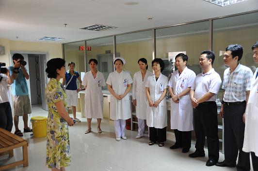 2009年6月17日上午,柳州市副市长文和群代表市委、市政府,在柳州市卫生局局长黄健辉的陪同下,来到我院感染病科,看望了柳州市首例甲型H1N1流感病人殷某及在医院隔离的密切接触者,慰问为防控“甲流”而辛勤工作的医护人员。