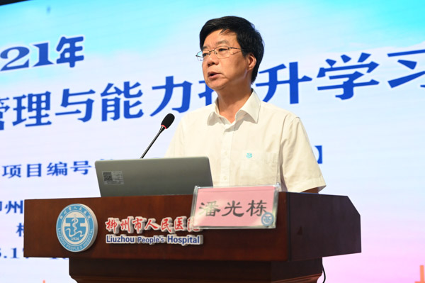 柳州市人民医院潘光栋副院长出席学习班并致词,他向到会的各位同仁表示热烈的欢迎、向在百忙之中莅临本次学习班的区内外各位专家教授表示衷心感谢!同时对我院静脉治疗护理团队的工作给予了肯定。他表示,我院自2019年成为广西静脉治疗专科护士临床培训基地以来,在静脉治疗的过程管理、安全管理、标准化建设等方面积累了丰富的经验,带教工作得到了院校及学员的高度认可。
