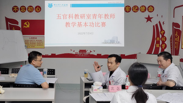 为进一步提高青年教师教学能力和水平,夯实青年教师教学基本功,提高课堂教学质量, 近日,柳州市人民医院五官科教研室2022年教学基本功比赛拉开了帷幕,前期经过各科室初赛评比,最终有5名青年教师脱颖而出,站在了决赛的赛场。