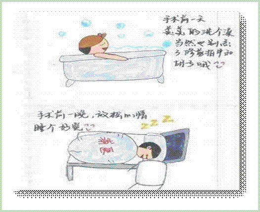 2.手术前一日洗澡,或擦拭手术部位皮肤,保持清洁。术前一日晚上好好休息,注意保暖,按护士的术前宣教禁食禁饮。
