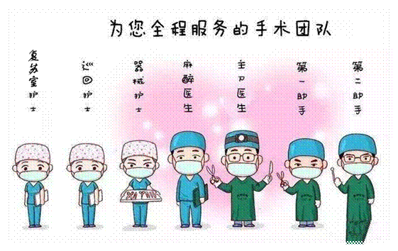 1.我们的团队:手术医生、麻醉医生和手术室护士。