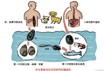 1.吃含有华支睾吸虫病幼虫的食物:因生食或半生食含有华支睾吸虫囊蚴的淡水鱼或虾而感染,也可因生食鱼、虾,或由于烧、烤、炒、煎小型鱼类不熟而感染。