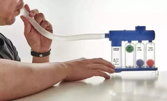 取站或坐位,选择容量在800-1000毫升的气球,先深吸气,然后把气球嘴含在嘴里,尽力把肺内气体吹入气球内,直至吹尽气为止,每次训练3-5分钟,每日训练3-4次。