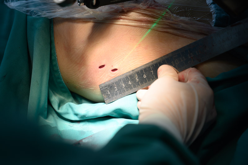 术中,创伤骨科团队将示踪器安装在患者手术处,与移动C型臂X光机相配合,手术团队根据生成图像模拟置钉,通过独有算法计算出入钉点及钉道,按照术中规划,施术者借助导向套筒,为患者精准的植入三枚螺钉,手术切口仅三个1厘米小洞,术中出血不到10毫升。