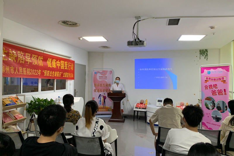 在孕妇学校,优生遗传门诊李军红主任医师向20余名准妈准爸详细介绍了如何预防出生缺陷的发生,强调做好婚前检查、孕前检查以及产前筛查的重要性,号召大家共同努力“防治出生缺陷,促进生育健康”。
