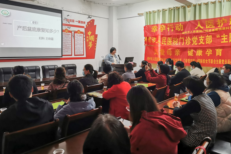 3月3日下午,在柳东卫生院,柳州市人民医院妇科王晓霜与准妈妈们分享产后盆底科学修复方法,解决准妈妈产后因咳嗽、打喷嚏出现漏尿等的难言之隐。