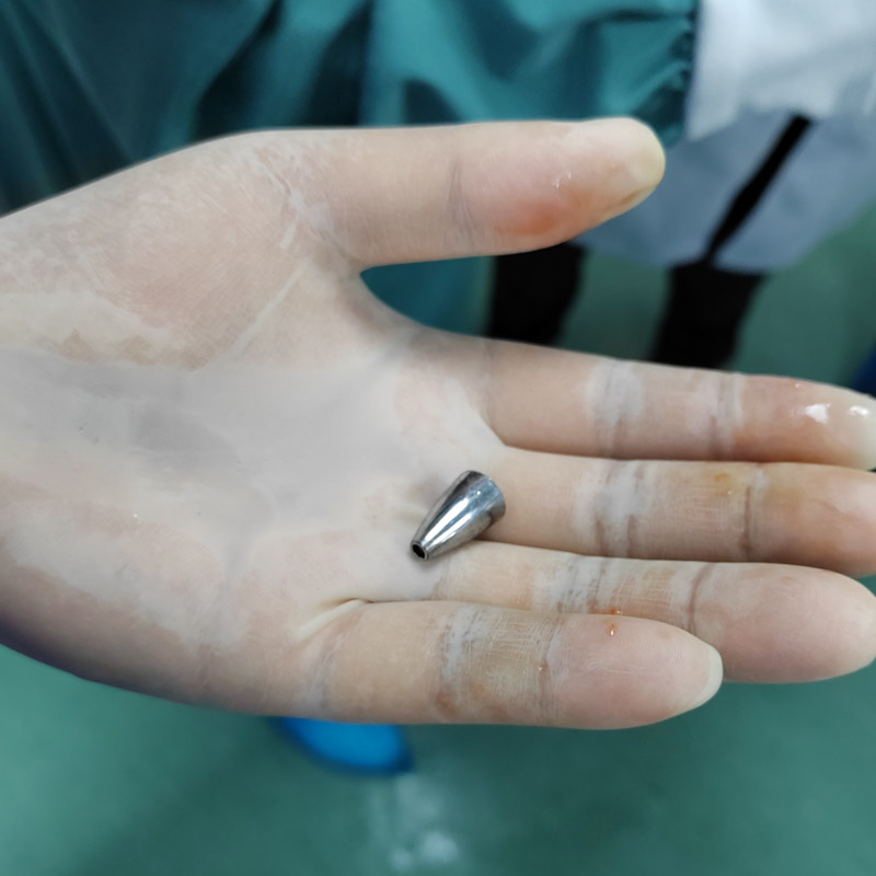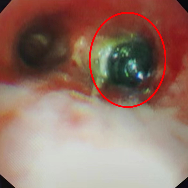 经过术前缜密讨论及模拟,在多学科协同配合下,施术医生小心松解嵌顿的笔头套后精准调整异物位置,缓慢将笔套头套入气管导管尖端后与气管导管一并退出气管、声门,顺利取出异物!