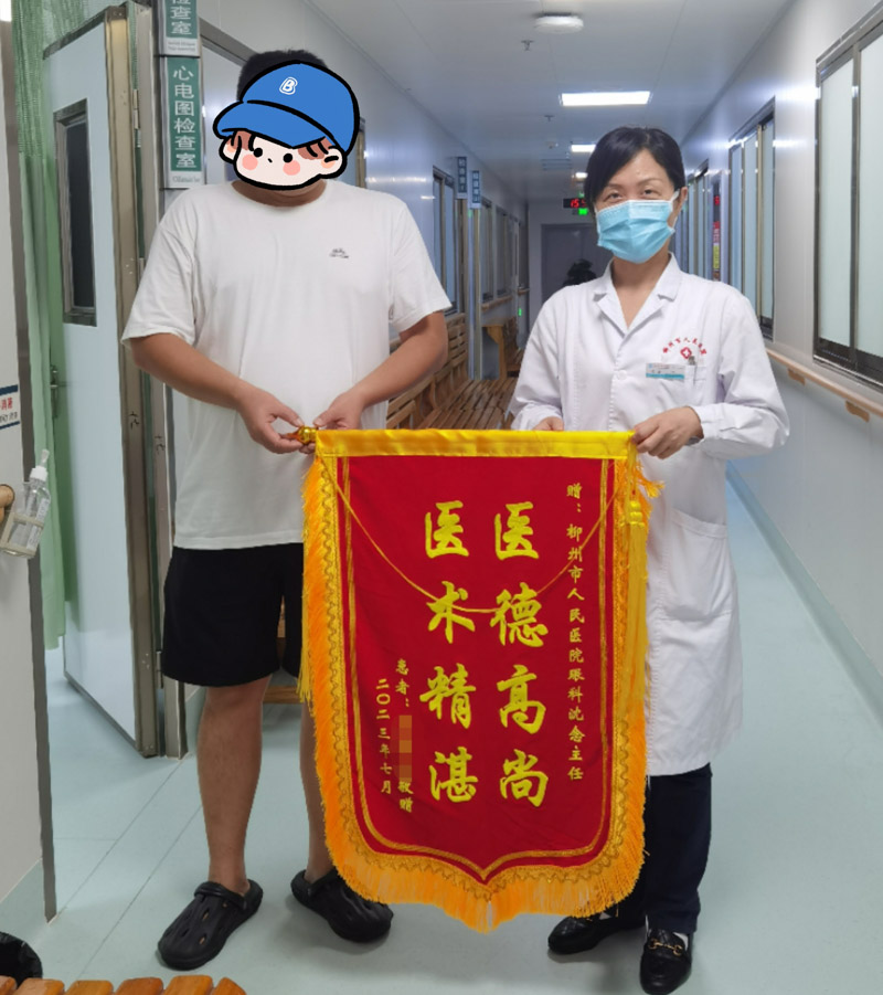 “我终于可以看见了,手术效果远远超出我的预期!”术后,骆女士和家人向医护人员送上了锦旗,以表达深深地谢意。