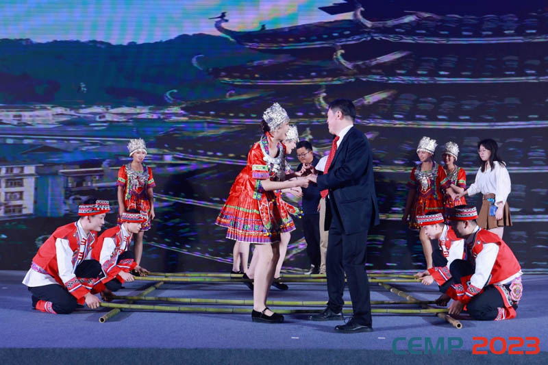在第六届急诊外科医师年会上,柳州市人民医院急诊医学科团队将一曲广西柳州特色民族歌舞《沁园春•粉》送给了在场嘉宾,赢得了阵阵掌声。节目的互动环节竹竿舞、“高山流水”敬酒环节更是将演出气氛推至高潮,让来自全国各地的同仁们领略到了广西柳州的民俗风情。演出结束后,与会的医学专家、学者纷纷争相与医院急诊医学科团队合影留念。
