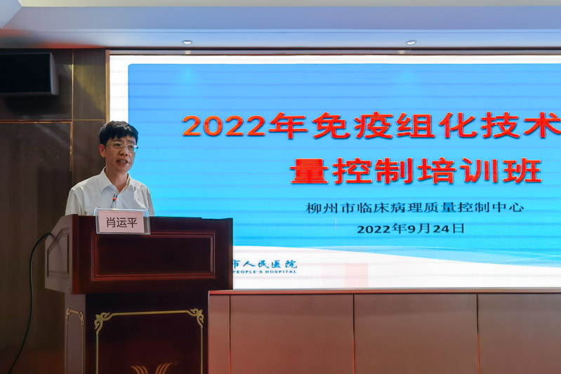为提升柳州市医疗机构病理科免疫组化切片染色技术与质量水平,进一步规范免疫组化技术操作,培训操作技能,近日,由柳州市临床病理质量控制中心、柳州市人民医院病理科主办的“免疫组化技术与质量控制培训班”成功举办。会议由柳州市人民医院病理科主任戴文斌主持。