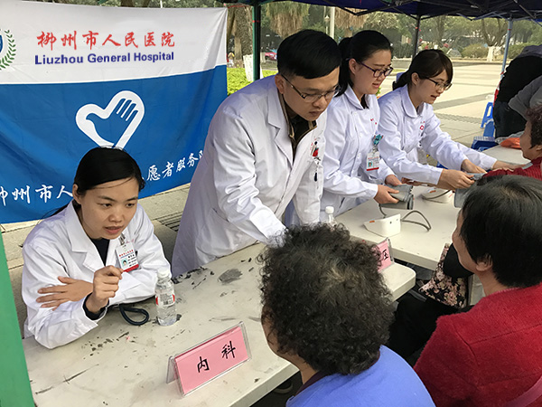 3月4日上午,柳州市人民医院组织医护人员志愿者到人民广场参加由市委文明委主办的“争创文明城 全民学雷锋”活动启动仪式,并在现场开展“学雷锋”义诊活动,关爱百姓健康,用实际行动服务广大群众,生...